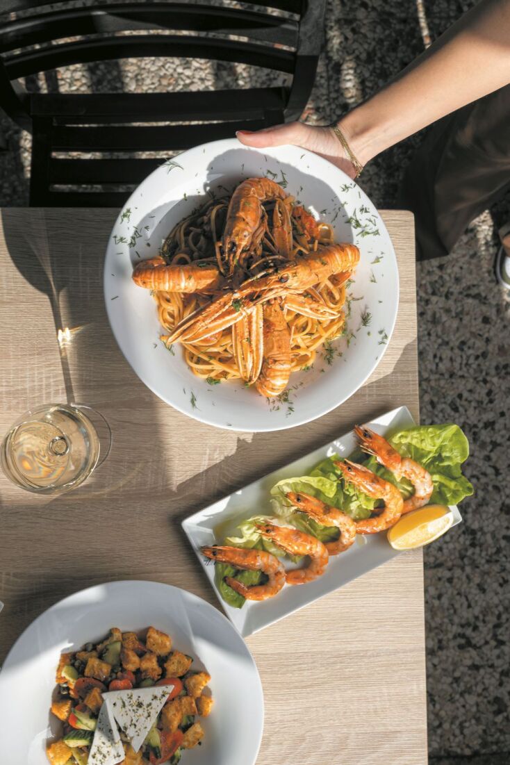 «Την πρώτη και άφθαστη ύλη την είχαμε ήδη. Όταν λοιπόν βρέθηκε τούτος εδώ ο χώρος δίπλα ακριβώς στο συσκευαστήριό μας, δεν μας πήρε και πολύ καιρό για να το αποφασίσουμε, και έτσι έγινε το Polpo…» μου λέει, για να συνεχίσει: «Τα παιδιά μου, η Αφροδίτη και ο Γιάννης, είναι που το κινούν, εγώ απλώς επιβλέπω και συμβουλεύω. Ό,τι φάτε εδώ είναι αυτά που τρώμε κι εμείς, η ψαριά μάς καθορίζει. Δεν κάνουμε εξεζητημένα πράγματα, δεν πειράζουμε τις γεύσεις, δεν έχουμε κάποιον σεφ να μας προτείνει τα δικά του. Εξάλλου, τι να κάνεις σε μια πεντάφρεσκη καραβίδα αν όχι να την αφήσεις να μιλήσει με τη νοστιμιά της;».