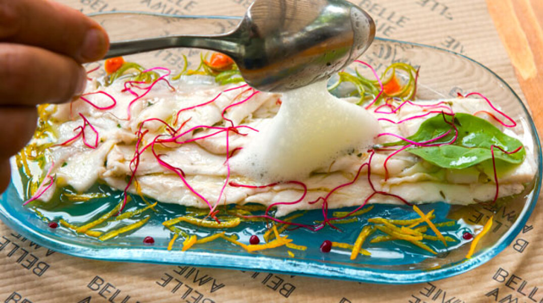 Σε λίγο εμφανίζεται και ο συμπαθέστατος Χρήστος Τζιέρας, προσωπικότητα έντονη και μάγειρας μέγας που με δυο κουβέντες μας βάζει στο κλίμα. «Δεν θέλαμε για το Belle Amie ένα πολύπλοκο κατάλογο με μοντερνιές και δηθενιές», ξεκαθαρίζει με τη μία. «Ούτε εγώ να επιδοθώ σε συνταγές και εκτελέσεις που αποδεικνύουν τη γνώση μου στις τεχνικές. Αντίθετα, βάλαμε πρωταγωνιστή την Ελλάδα, τα υπέροχα προϊόντα κάθε τόπου, πιάτα που όλοι μας ξέρουμε και νοσταλγούμε τη γεύση τους. Και πολλή αγάπη».