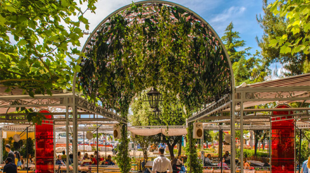 Πλησιάζοντας εντύπωση μου κάνει και ο κόσμος που κάθεται στις διάφορες γωνιές του εξωτερικού του χώρου. Ένα συνονθύλευμα όλων των ηλικιών και όλων των …φυλών. Άλλοι πίνουν ποτό, άλλοι ούζο με μεζέ, άλλοι καφέ ελληνικό με κάποιο γλυκό, σε κάποιες παρέες τα…κάνουν όλα, ο καθένας με την όρεξή του.