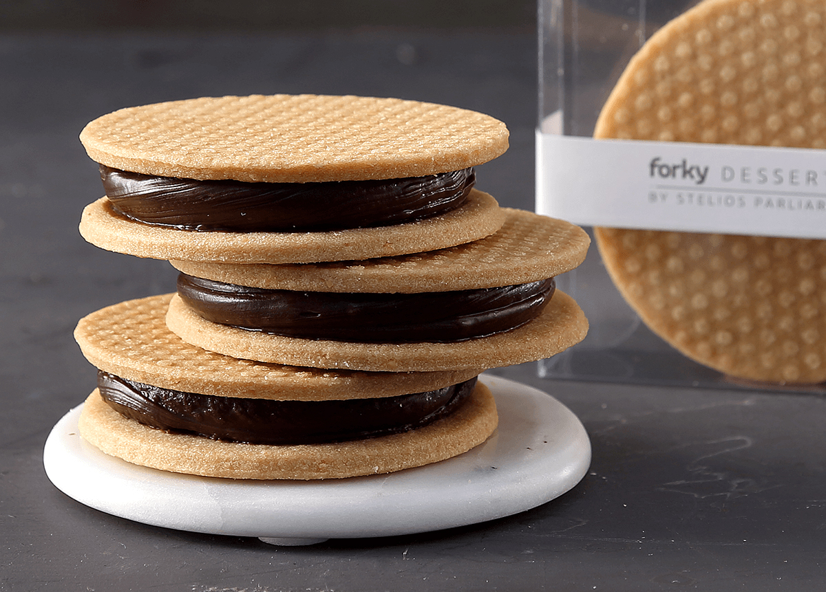 Δυο τραγανά μπισκότα βουτύρου με γέμιση bitter σοκολάτας Valrhona by Stelios Parliaros