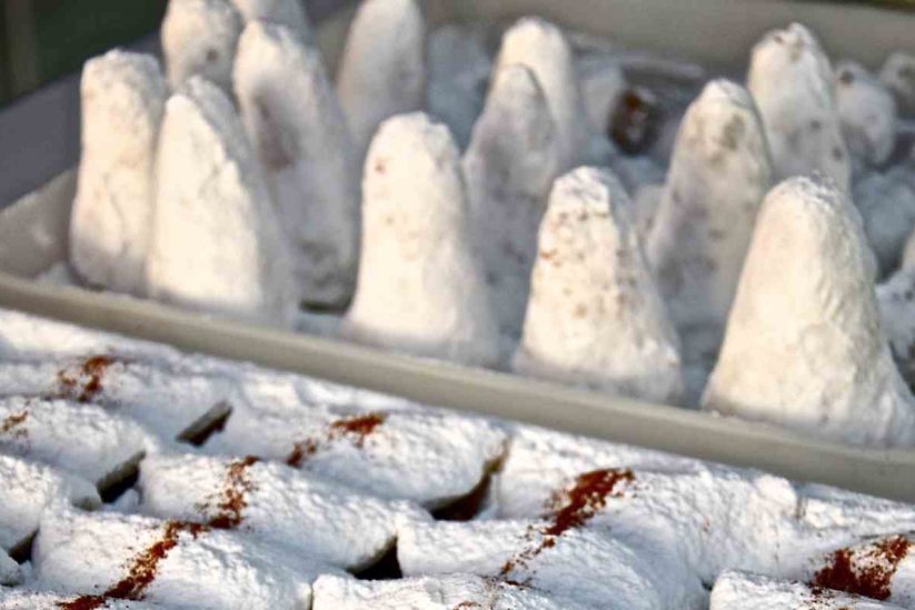 Τα υλικά της συνταγής είναι όλα κι όλα τέσσερα: αμύγδαλα, ανθόνερο, σιμιγδάλι και ζάχαρη. Σ’ ένα καζάνι με χλιαρό ροδόνερο ανακατεύονται για κάμποση ώρα το αλεσμένο αμύγδαλο με το σιμιγδάλι και τη ζάχαρη, και μετά αρχίζει το στρώσιμο του μείγματος. Το ψητό αμυγδαλωτό μπαίνει στο φούρνο μορφοποιημένο σε αχλαδάκια και αφού ψηθεί ζαχαρώνεται με ζάχαρη πούδρα και στέφεται μ’ ένα μοσχοκάρφι. Η αφεντιά μου προτιμά το άψητο αμυγδαλωτό, που είναι πολύ ζουμερό, εύγεστο και πιο φινετσάτο.
