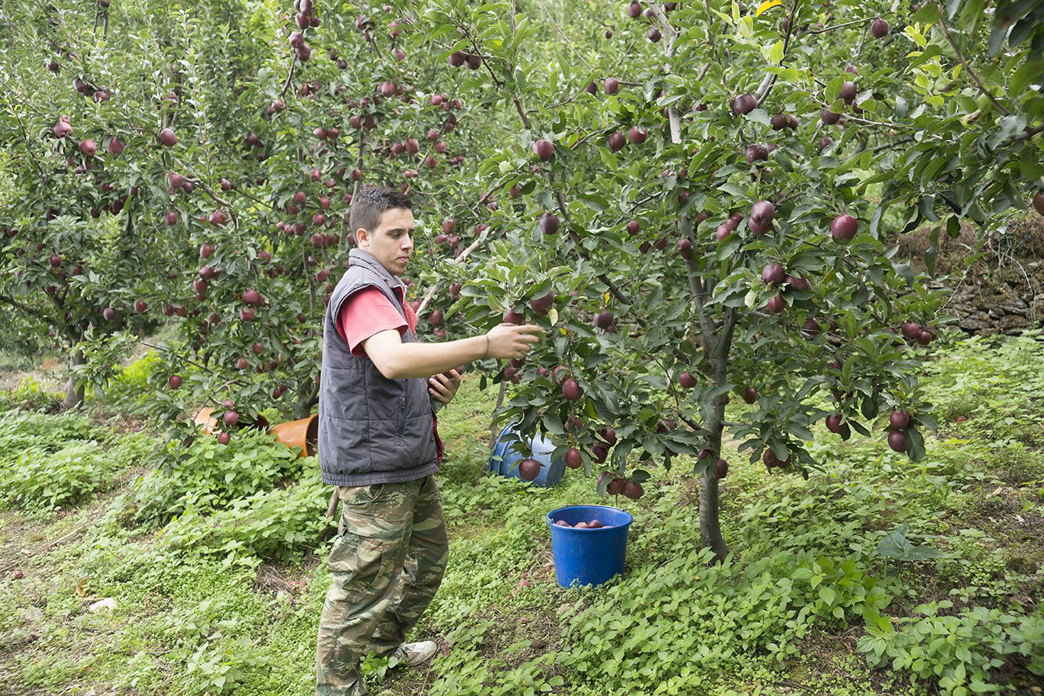 Η συγκομιδή των μήλων γίνεται με τα χέρια.