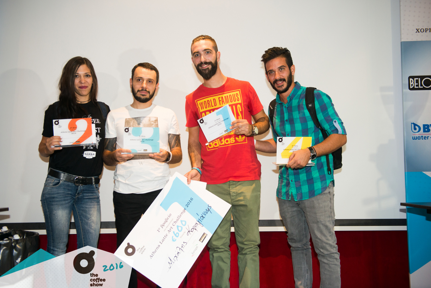 Όλα αυτά μέχρι τη στιγμή που το The Coffee Show έφτασε στην κορύφωσή του, ανακοινώνοντας τους νικητές του τελικού του “Athens Latte Art Challenge 2016”. Το πρώτο βραβείο και το έπαθλο των €600 πήρε ο Μιχάλης Καραγιάννης, το δεύτερο η Φωτεινή Δερμεντζόγλου, ενώ στην τρίτη θέση βρέθηκε ο Κυριάκος Τσαπέπας και στην τέταρτη ο Γιάννης Τσίκλης.