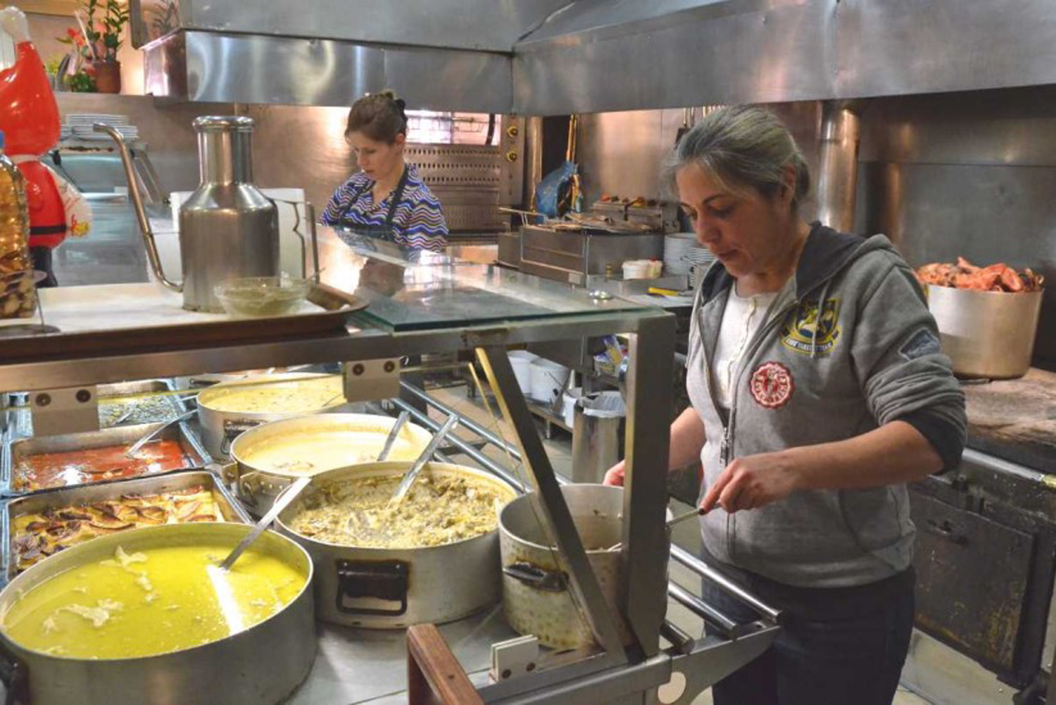 Το μαγαζί απλό και λιτό, χωμένο μέσα στα εκατοντάδες χασάπικα, το σώζουν οι δύο μεγάλες «οθόνες» του. Η μία είναι οι τζαμαρίες του που κοιτάζουν στην αγορά, ένα θέαμα όλο ζωή. Η άλλη είναι η κουζίνα του, μια οθόνη τεράστια, όπου καζάνια βράζουν στη μεγαλύτερη πλάκα φούρνου της Αθήνας, τεντζέρηδες γεμίζουν, πελάτες σαστίζουν μπρος τις γεμάτες διαλεχτά φαγητά κατσαρόλες και προβληματίζονται τι απ’ όλα να διαλέξουν. Δεκάδες μερίδες σερβίρονται καθημερινά. Μια open kitchen πολύ πριν βγουν στη φόρα οι σύγχρονες. Τρέχουν τα σάλια σου, δακρύζουν τα μάτια σου από τις παρηγορητικές εικόνες φαγητών που ανακαλούν αναμνήσεις, θύμισες. Γλέντια, ξενύχτια, μεθύσια.