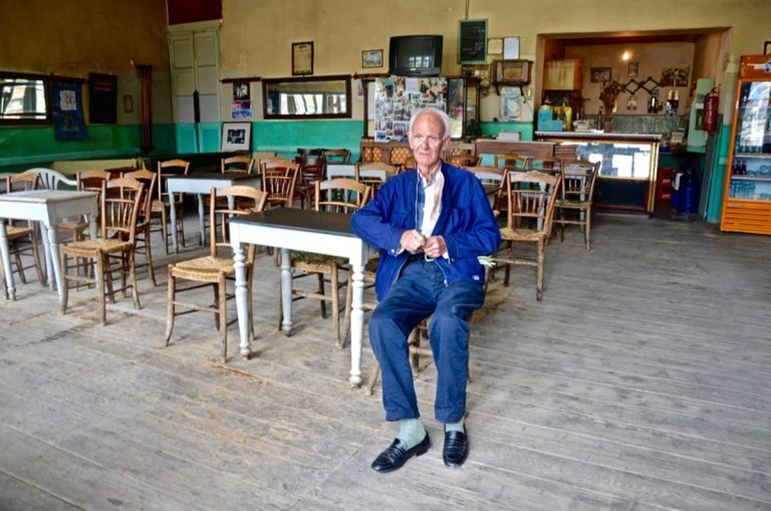 Μία ευρύχωρη και ψηλοτάβανη αίθουσα όπου το ξύλινο πάτωμα με τις ακατέργαστες καρφωτές σανίδες και οι παστέλ τοίχοι φωτισμένοι από το γλυκό ρουμελιώτικο φως της μεγάλης τζαμαρίας πρόβαλαν τους πρωταγωνιστές του χώρου. Τις εξαίσιες καρέκλες δίπλα στα τραπεζάκια τους, αρχόντισσες όλο φινέτσα, η κάθε μια τη χάρη της, περήφανες για αυτούς που τις έχουν χρησιμοποιήσει, ζουν με τις αναμνήσεις τους και δεν νοιάζονται για τη σημερινή ερημιά.