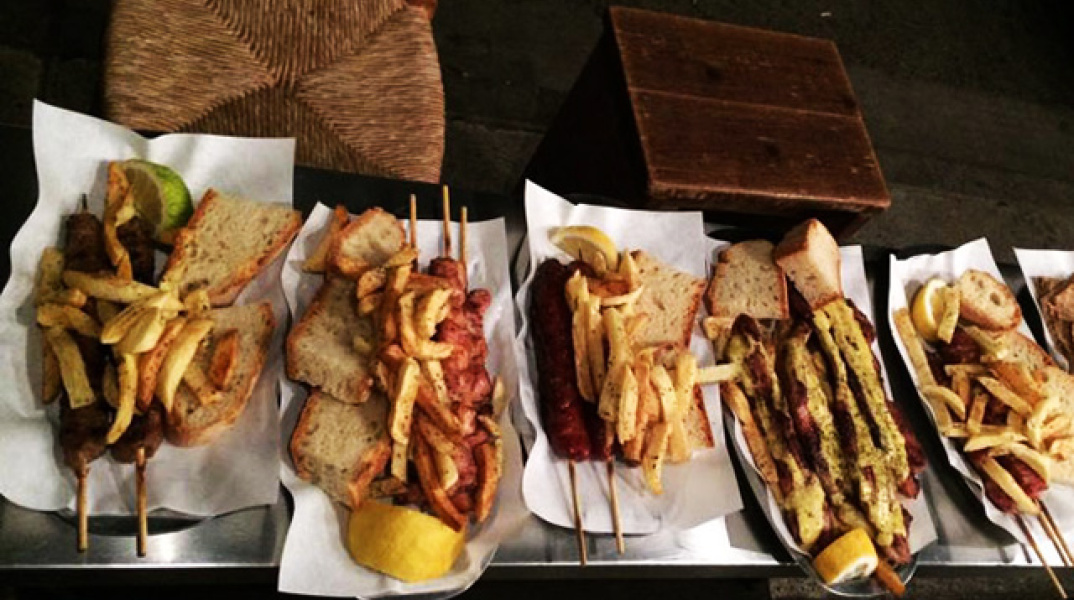 Δαγκώνω την πατάτα την κομμένη στο χέρι, δοκιμάζω και το καλαμάκι λουκάνικο, ελαφρύ, αρωματικό και σωστά ψημένο, ούτε ωμό ούτε «τσιχλέ», ήρθε η ώρα του καλαμακίου- κεμπάπ και δεν μπορώ να σας περιγράψω για τι νοστιμιές μιλάμε.