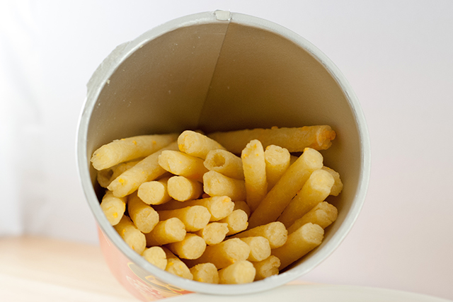 Συσκευασμένες τηγανιτές πατάτες που κυκλοφορούν με γεύση τυριού, βουτύρου, σαλάτας (;;;), κοτόπουλου curry ή σκόρδου.