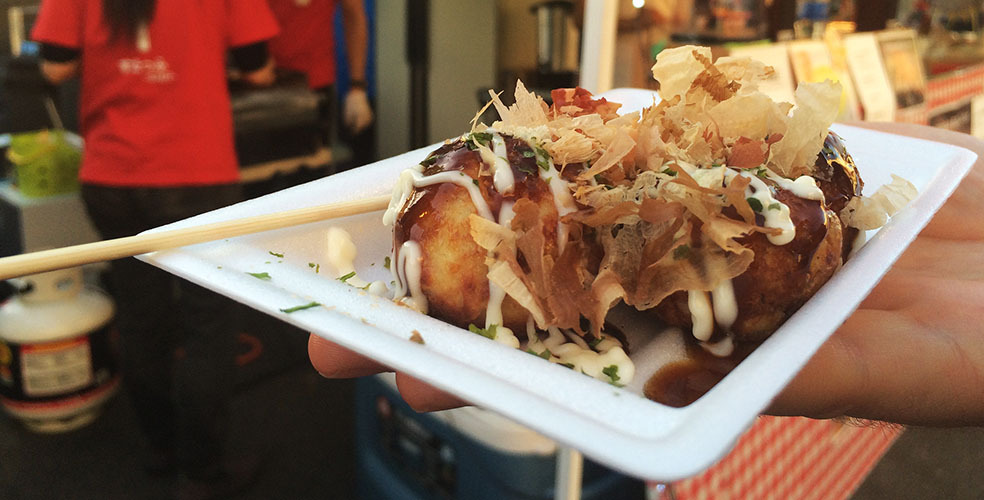 Οι συγκεκριμένοι λουκουμάδες είναι αλμυροί, γεμιστοί με χταπόδι και τουρσί ginger, και βουτηγμένοι σε σάλτσα takoyaki. Συνήθως ο σεφ θα το τηγανίσει μπροστά στα μάτια σου ακόμα και αν το ψωνίζεις από το δρόμο, και υπάρχουν άπειρες γεύσεις από τις οποίες μπορείς να διαλέξεις.