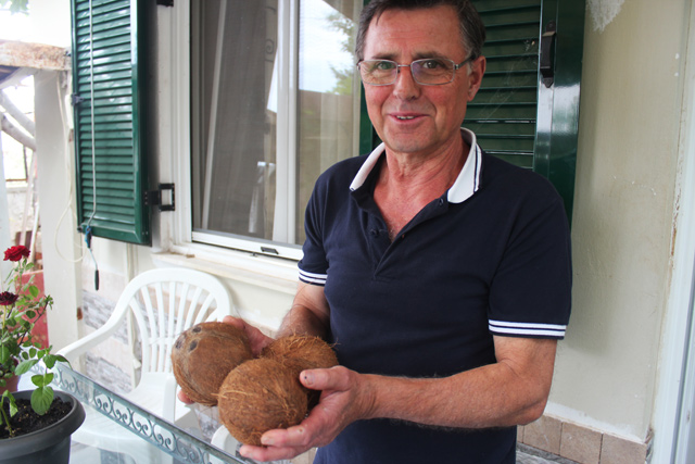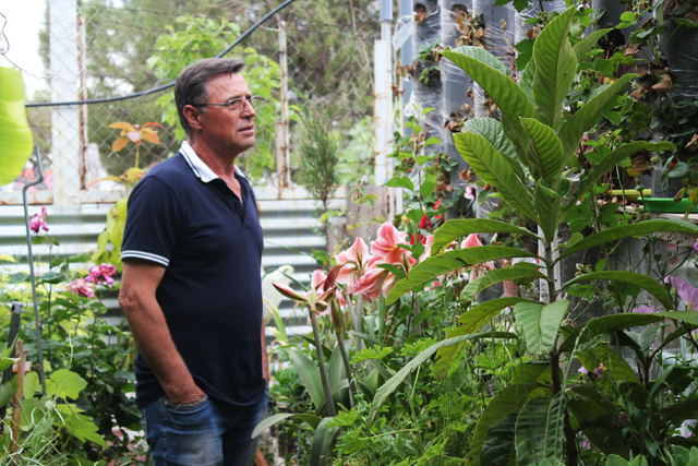 Τρέφεται αποκλειστικά με φρούτα και ωμά λαχανικά και δεν μαγειρεύει καθόλου την τροφή του. Κάθε 20 μέρες πηγαίνει στην κεντρική λαχαναγορά και γεμίζει όλο το αυτοκίνητο με δεκάδες καφάσια. Αγοράζει σε τιμή χονδρικής και καταναλώνει περίπου 40 κιλά φρούτων και λαχανικών τον μήνα. Στον κήπο του αυτή την εποχή θα βρεις φράουλες. Και αβοκάντο. Έχει και μια συκιά. Τρώει όσα σύκα μπορεί. Τα υπόλοιπα τα κάνει μαρμελάδα και τη χαρίζει σε φίλους. Δεν τρώει ζάχαρη. Ούτε μέλι. Δεν τρώει κανένα ζωικό παράγωγο. Το κρέας δεν αντέχει καν να το μυρίσει. Δεν είμαι χορτοφάγος, πόσο μάλλον vegan ωμοφάγος. Όμως όσο συζητώ μαζί του, νιώθω μια ακαταμάχητη επιθυμία να μασουλήσω καρότα.