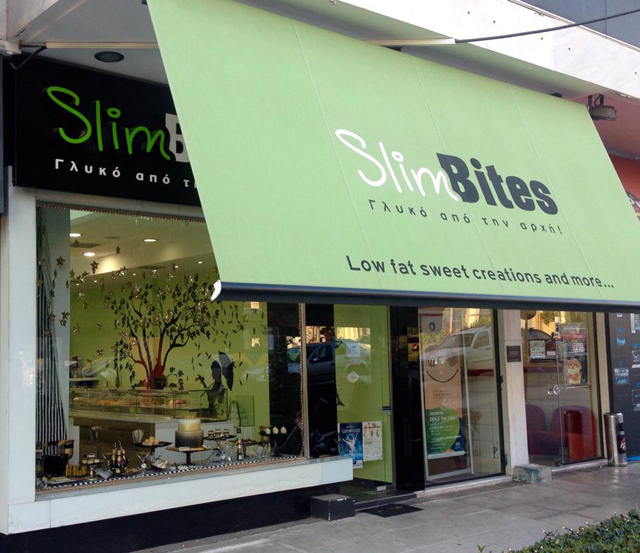 Με µότο το «Γλυκό από την Αρχή», τα ζαχαροπλαστεία Slim Bites φτιάχνουν χειροποίητα, απίστευτα γλυκά χωρίς καθόλου ζάχαρη, µε εκλεκτές και αγνές πρώτες ύλες. Τα φρούτα είναι εποχής, οι ξηροί καρποί και τα γαλακτοκοµικά προϊόντα υψηλής ποιότητας, η σοκολάτα µε στέβια και το κακάο µε χαµηλά λιπαρά.