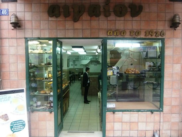 Το «Αιγαίον» άνοιξε το 1926 στο ισόγειο του νεοκλασικού (κατασκευής του 1890) στην οδό Πανεπιστημίου. Αρχικά ως καφενείο, εισήγαγε λίγα χρόνια αργότερα ένα προϊόν που αγαπήθηκε από το αθηναϊκό κοινό, καθιστώντας «κλασικό» το συγκεκριμένο έδεσμα.