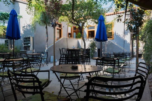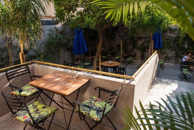 Το πρώτο πράγμα που αντικρίζει κανείς ωστόσο, είναι μία όμορφη και κατάφυτη αυλή που φιλοδοξεί να γίνει ακόμα πιο πράσινη, έτσι ώστε να προσφέρει απλόχερα τη σκιά και τη δροσιά της κατά το μεγάλο αθηναϊκό καλοκαίρι . Η εξωτερική σκάλα που οδηγεί στο χώρο του μπαρ, σου δίνει επίσης το χρόνο που χρειάζεται για να επεξεργαστείς τις δυνατότητες του χώρου.