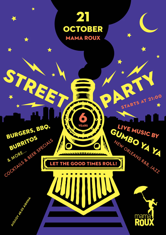 Φθινοπώριασε (λέμε τώρα) και μας έλειψε ένα παρτάκι στο δρόμο. Όχι όμως ό,τι παρτάκι να’ ναι…Έχουμε όρεξη για μια μεγάλη γιορτή με νόστιμο (κι αμαρτωλό!) φαγητό, με μουσικές και αρκετή μπίρα για να μας κάνει να ξεχάσουμε ότι το καλοκαίρι τέλειωσε (ξαναλέμε τώρα). Πάνω στην ώρα επιστρέφει το καθιερωμένο BBQ Street Food Party του Mama Roux.