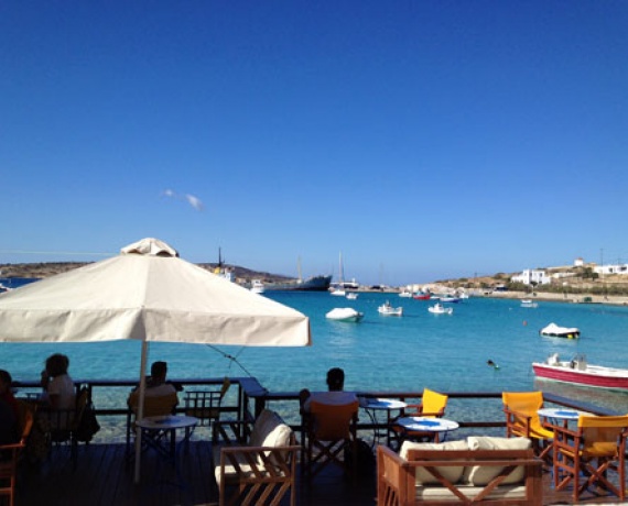 Το « Κύμα» είναι ένα μικρό καλόγουστο καφέ-μπαρ μερικά μέτρα πιο δεξιά από εκεί που σε αφήνει το πλοίο. Κάθεσαι σε μια βεράντα ακριβώς πάνω από τη θάλασσα και αγναντεύεις τη μυστήρια Κέρο και τους ορεινούς όγκους των μικρών Κυκλάδων να χάνονται στο πέλαγος. Και ενώ πιστεύεις ότι πραγματικά δεν θες τίποτα περισσότερο για να είσαι ευτυχισμένος, σκάει μπροστά σου ένα πιάτο με ζεστούς τραγανούς λουκουμάδες!