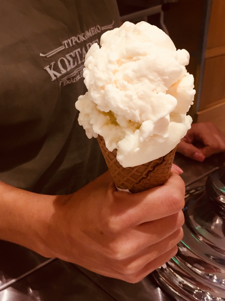 Στο σουβλατζίδικο που αγαπούν οι φίλοι μου και μετά παγωτό χωρίς ζάχαρη που δεν καταλαβαίνεις καθόλου ότι δεν έχει ζάχαρη