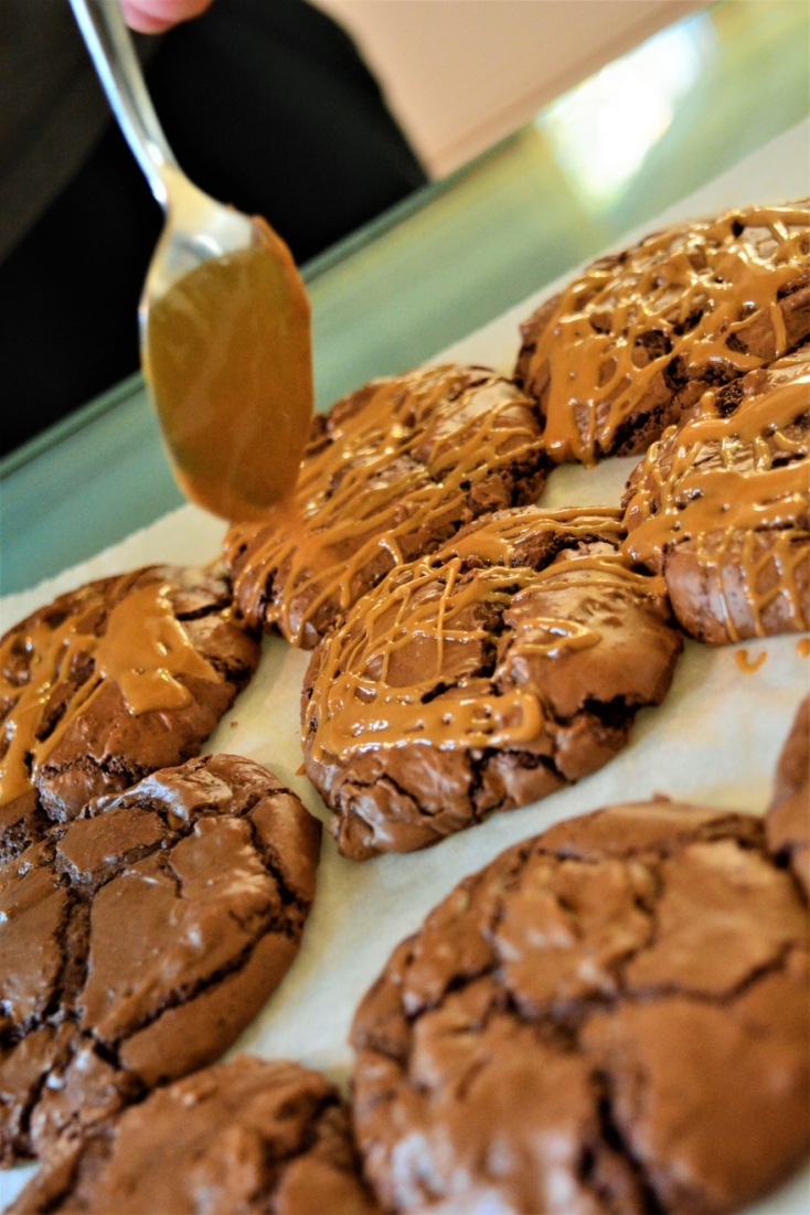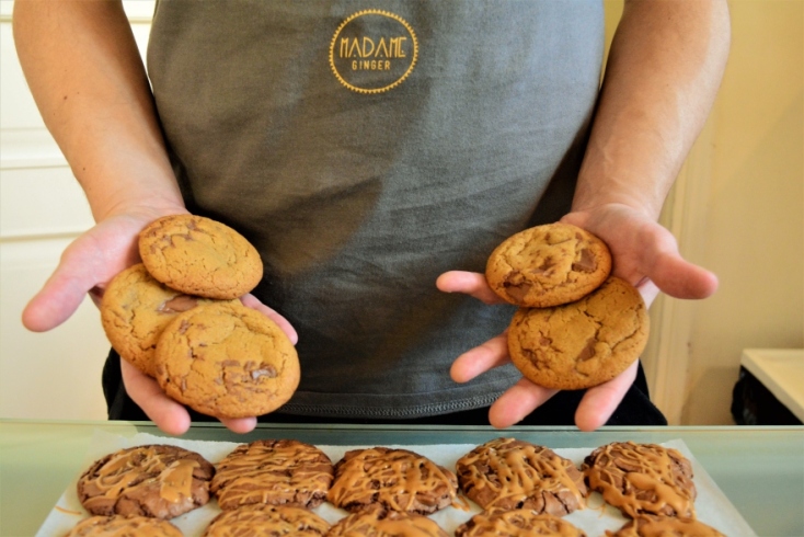 Τα μπεστ-σέλερ είναι τα double choc διπλής σοκολάτας με φιστικοβούτυρο από πάνω. Τα δικά μου αγαπημένα είναι τα κλασικά choc chip με κομμάτια μαύρης σοκολάτας.