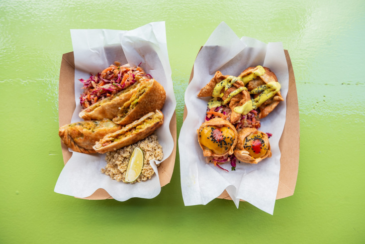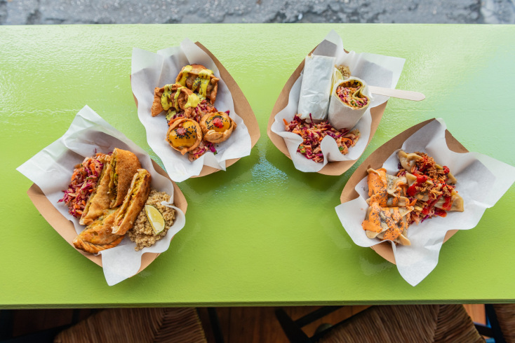 Εμείς δοκιμάσαμε το μοσχάρι με chutney γλυκού τσίλι (καταναλώθηκε σε περίπου 39 δευτερόλεπτα), το κοτόπουλο με dressing από κάρυ (24 δευτερόλεπτα) και το χοιρινό με chutney μάνγκο (απλά εξαφανίστηκε), πριν αναρωτηθούμε τι άλλο καλό υπάρχει να καρδαμώσουμε.