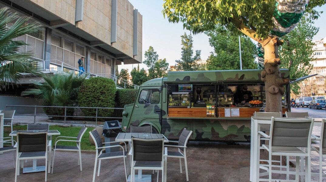 Η νέα καντίνα της πόλης στημένη σε ένα φορτηγάκι Citroen βρίσκεται έξω από το Πολεμικό Μουσείο στη Ριζάρη