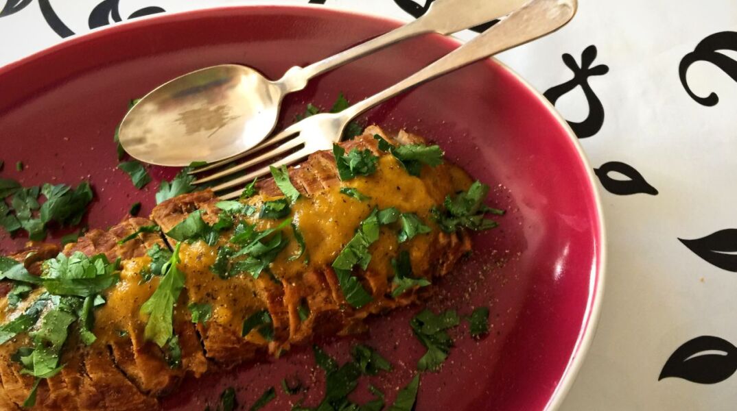 - Το περιχύνουμε με μερικές κουταλιές από τη σάλτσα και την υπόλοιπη τη σερβίρουμε ξεχωριστά.