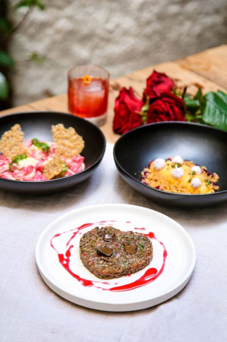 Τι θα έλεγες να απολαύσεις μαζί με την αγάπη σου σούπα σελινόριζας με κάστανο και νουαζέτ; Να ταΐσετε ο ένας τον άλλον ραβιόλια γεμιστά με μανιτάρια ή να μοιραστείτε ένα κατακόκκινο cheesecake; Το ιντριγκαδόρικο εστιατόριο του Παγκρατίου για την ημέρα του Αγίου Βαλεντίνου έχει ετοιμάσει ένα ερωτικό μενού για δύο (€35/άτομο) που περιλαμβάνει 5 πιάτα. Μπορείτε να το προπαραγγείλετε μέσω τηλεφώνου (210 7230838) ή να κάνετε την παραγγελία σας μέσω της Wolt. Το μενού ισχύει από 11 έως 14 Φεβρουαρίου και θα είναι διαθέσιμο και ανήμερα του Αγίου Βαλεντίνου για όσους το αποφασίσουν την τελευταία στιγμή.