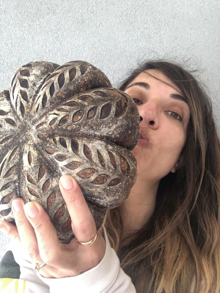 «Δούλευα χρόνια στον χώρο της εστίασης όμως όχι στην κουζίνα, αλλά έξω, στη σάλα μια και αγαπώ την επαφή με τους ανθρώπους. Στην πρώτη καραντίνα αποφάσισα να κάνω το πρώτο μου ψωμί με μαγιά. Ήταν ωραίο οπότε πήγα στο επόμενο βήμα που ήταν ψωμί με προζύμι. Έψαξα, ρώτησα και ξεκίνησα να φτιάχνω το δικό μου προζύμι που μετά από δεκαπέντε μέρες ήταν έτοιμο για χρήση. Εκείνη τη μέρα κόλλησα το μικρόβιο του baking και ξεκίνησα το ταξίδι. Άρχισα να βλέπω βίντεο στα social media τα οποία είναι γεμάτα πληροφορίες και να μιλάω με παθιασμένους με το θέμα απ’ όλο τον κόσμο. Είναι μια μαγική διαδικασία το ψωμί και το προζύμι που θέλει υπομονή, συνέπεια αγάπη και καλή ενέργεια. Είναι ζωντανό, κάθε μέρα το ταΐζω και αυτό μου χαρίζει αυτά τα ωραία σουρντουδάκια. Sourdough, δηλαδή ξινή ζύμη εγώ το λέω «σουρντού» και έτσι γεννήθηκε #τοσουρντουτησδεσποινας στο Instagram.»