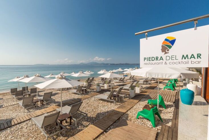 To Piedra del Mar είναι ένα beach bar lounge restaurant και fashion boutique στο Μπαρμπάτι της Κέρκυρας