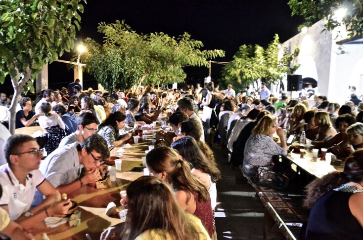 Είναι σκέτη απόλαυση να τους βλέπεις να δουλεύουν με τόσο κέφι και γενναιοδωρία προκειμένου η κοινότητα του νησιού να σφυρηλατήσει την κοινωνική της συνοχή και την πίστη της στο μέλλον γύρω από ένα μεγάλο τραπέζι.
