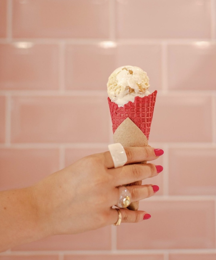 Βρέθηκα εδώ ένα ζεστό μεσημέρι του καλοκαιριού, μην μπορώντας να αποφασίσω πού να εστιάσω πρώτα την προσοχή μου. Το μενού είναι πληθωρικό: specialty καφέδες για όλα τα γούστα, κρύες σοκολάτες όπως bueno, λευκή, γάλακτος με φυστικοβούτυρο και μόκα «άχαστη» που λέμε και στο χωριό μου, milkshakes vegan και μη που σε κάνουν να τα σκέφτεσαι για μέρες, λαχταριστά smoothies, φυσικούς χυμούς μούρλια αλλά κυρίως φοβερό παγωτό τσουρέκι με ολόκληρα κομμάτια, το οποίο καταβρόχθισα μέσα σε ένα ξεροψημένο φούξια χωνάκι, το ξαναέφαγα και …το ξαναέφαγα να το πω άλλη μια φορά; Pavlova, αγαπημένo φουντούκι, κι ακόμη macaron από άλλο πλανήτη, φιστίκι Αιγίνης, καρύδα, salted caramel για όλα τα γούστα, τρομερό passion fruit vegan, καϊμάκι που σε ταξιδεύει, brownies με bitter σοκολάτα που λιώνει στο στόμα σου, δροσερό sorbet μανταρίνι και μαστίχα, το λίγο πιο ξινό sorbet ρόδι και φυσικά βανίλια pecan με σιρόπι καραμέλα που αξίζει να δοκιμάσεις. Ναι ναι όπως αντιλαμβάνεστε κανένα δεν μου ξέφυγε!