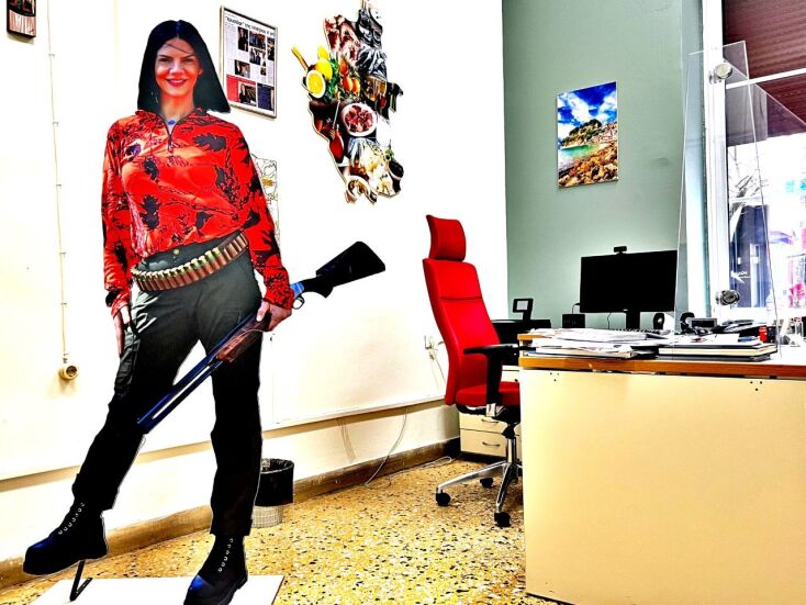 Η συγκεκριμένη φωτογραφία όντως προκαλεί εντύπωση. Προέκυψε για την προβολή της έκθεσης «Κυνηγεσία 2022» στο MEC Παιανίας στην οποία συμμετείχα για λογαριασμό της Περιφέρειας, και γενικότερα στο πλαίσιο της συνεργασίας με την κυνηγετική οικογένεια. Σήμερα βέβαια στο κυνήγι έχει αποκτήσει θέση και το γυναικείο φύλο, αν και εγώ μέχρι τη φωτογραφία έφτασα. Πρόσφατα, για να το πω, το Υπουργείο Περιβάλλοντος με πρωτοβουλία του υφυπουργού Γιώργου Αμυρά, βράβευσε σε εκδήλωση στα Γιάννενα πέντε γυναίκες κυνηγούς αγριόχοιρων. Αλλά προφανώς όλοι οι επισκέπτες του γραφείου μου δεν το γνωρίζουν αυτό και χρειάζονται κάποια δευτερόλεπτα μέχρι να συλλάβουν την εικόνα.