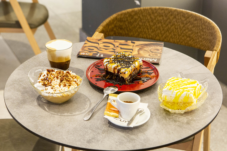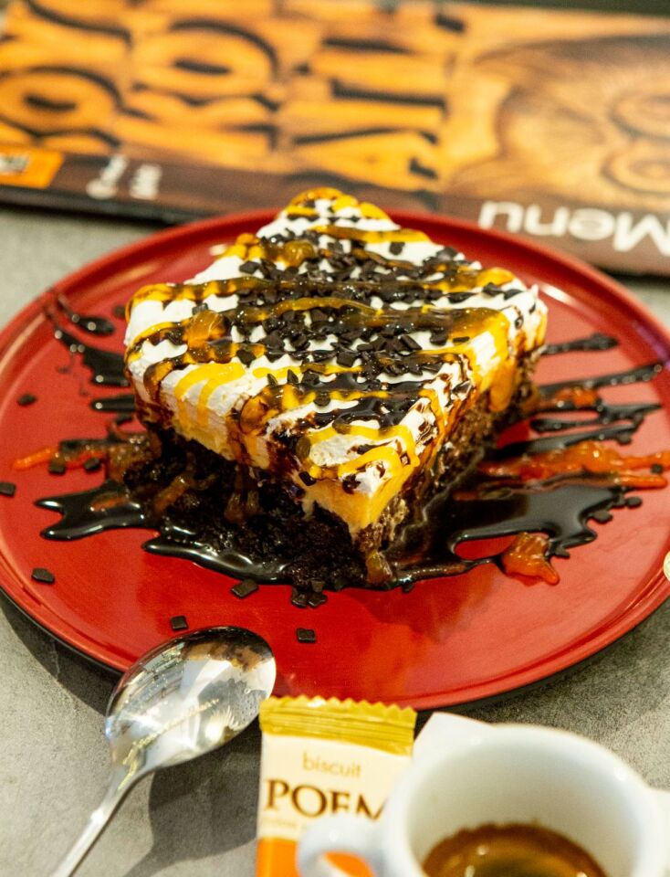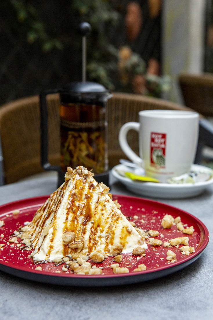 Η πυραμίδα, από την άλλη, είναι ένας παγωμένος συνδυασμός μους καραμέλας, μπισκότου βουτύρου και καρυδιού που γαρνίρεται με σιρόπι καραμέλας και τριμμένο καρύδι. Φυσικά, δεν μπορούμε να μην αναφέρουμε την παραδεισένια πάβλοβα και το cheesecake, το οποίο είναι τοπ και στις 6 εκδοχές του.