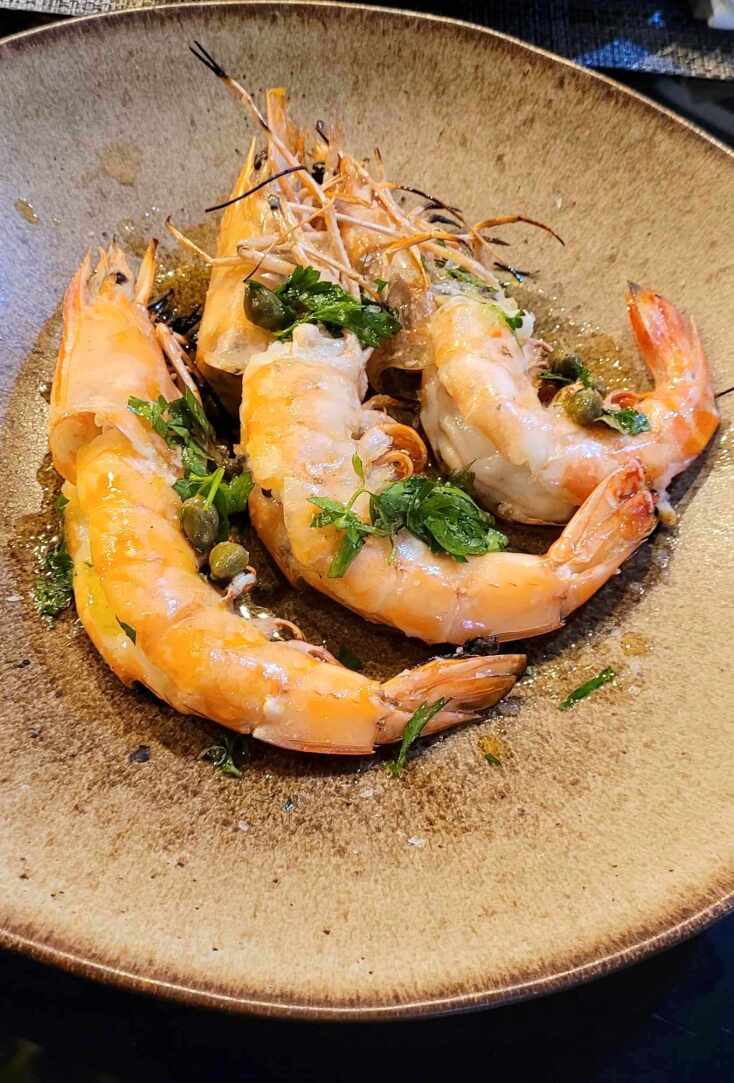Αλλά αρκετά με τα (κάποια) επίλεκτα του c.v. του, γιατί ο σεφ ανυπομονεί να δοκιμάσουμε τα πιάτα που σερβίρει εδώ στο εστιατόριο του νέου του ξενοδοχείου στον Πλαταμώνα. Η wellcome μπρουσκέτα με το αιγοπρόβειο βούτυρο και το αυγοτάραχο Μεσολογγίου είναι σκέτη ποίηση, ενώ τα καλαμάρια με πορτσίνι, οι γαρίδες Πλαταμώνα με κάπαρη, βούτυρο, σκόρδο και μαϊντανό και το καλαμάρι στη σχάρα πιστοποιούν γιατί στα καθαγιασμένα νερά του Αιγαίου υπάρχουν θαλασσινά μαργαριτάρια. Και ψάρια σαν το φασί, συγγενικό με το καλκάνι. Το φασί του χορεύει μέσα σε ελιά, κάπαρη, ρίγανη και ντομάτα. Το κρασί Ροδίτης natur, με έντονα εσπεριδοειδή, νεκταρίνια, πεπόνι και φρέσκα βότανα, δένει φίνα με τις αλμύρες και τις κρεμώδεις υφές των πιάτων.