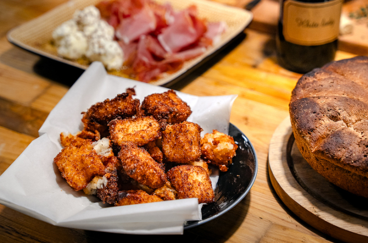 Μαζί με τις κροκετούλες από παρμεζάνα και ταπιόκα (άμυλο που εξάγεται από τη ρίζα της κασάβα και βρίσκεται αρκετά κοντά στην κινόα), το ζεστό ζυμωτικό ψωμί ολικής άλεσης και τις τηγανητές ελιές με τοματίνια (φυσικά, από τον κήπο τους), το πρώτο μπουκάλι που ανοίγει είναι το λευκό, υπέροχο Golden Lady.