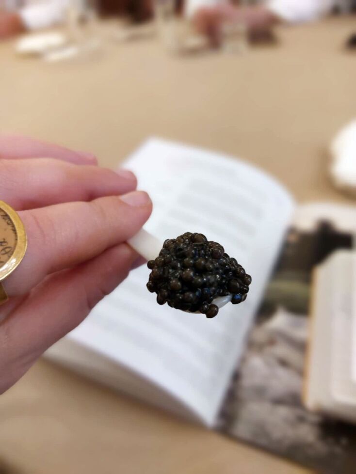Η Margaux Gairin-Michaux επικεφαλής επικοινωνίας στην Sturia, ξεκινά την παρουσίαση εξηγώντας πρώτα απ’ όλα τι είναι το χαβιάρι. Η λέξη «χαβιάρι», λοιπόν, αναφέρεται σε αλατισμένα αυγά οξύρρυγχου (και μόνο οξύρρυγχου). Στη Γαλλία το χαβιάρι φτάνει το 1917 με τους ρώσους αριστοκράτες που βρίσκουν καταφύγιο εδώ λόγω της ρωσικής επανάστασης.