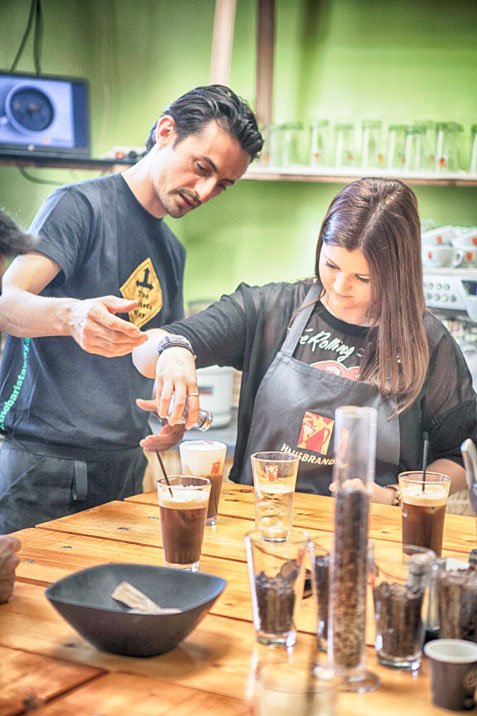Στην τρίτη αίθουσα επικρατεί κίνηση πολλή. Είναι η τελευταία μέρα του σεμιναρίου Barista και οι μαθητές θέλουν να δείξουν τον καλύτερο εαυτό τους. Πηγαινοέρχονται συνέχεια, η μηχανή του καφέ δεν σταματά να γουργουρίζει, όπου και να κοιτάξεις υπάρχουν ποτήρια με καφέδες. Ζητάω έναν freddo espresso (τέλειος), που ετοιμάζεται μπροστά μου σε δευτερόλεπτα. Ουάου.