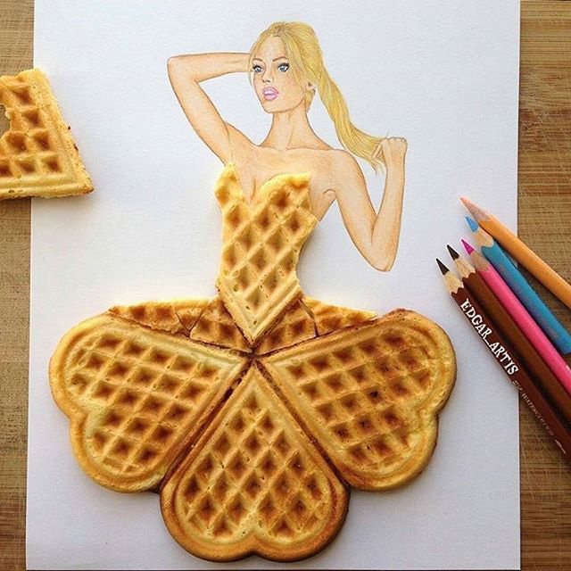 Πλισέ φούστες από τηγανιτές πατάτες, μακριές τουαλέτες φτιαγμένες με σπαγγέτι, φραουλένια φορέματα και κουστούμια από σοκολάτα γάλακτος. Η φαντασία του Edgar Artis, ενός σχεδιαστή μόδας από την Αρμενία, μάλλον δεν θα περάσει ποτέ στις πασαρέλες, αλλά τι πειράζει; Δεν παύει να μας ανοίγει την όρεξη.