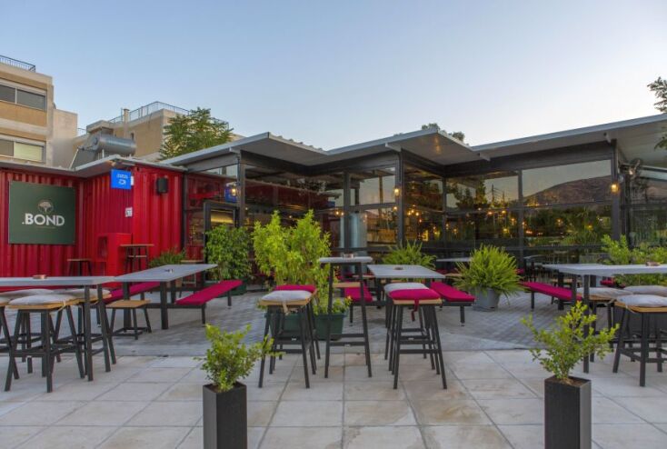 Μ: Το Bond είναι το μοναδικό μαγαζί στην Αθήνα φτιαγμένο από containers και από ανακυκλώσιμα υλικά. Δεν υπάρχει τίποτα σε μπετό, γυψοσανίδα, οτιδήποτε δηλαδή μπορεί να κόψει την επαφή με την φύση. Είναι πολύ έντονο το πράσινο στοιχείο, δηλαδή στο οικόπεδο έχουν χρησιμοποιηθεί πάρα πολλά φυτά και έχουμε δημιουργήσει ένα τεράστιο κήπο, τόσο στο εξωτερικό, όσο και στο εσωτερικό χώρο του μαγαζιού. Αυτό που θέλουμε να πετύχουμε είναι όπου κάθεται ο πελάτης να βλέπει πράσινο.