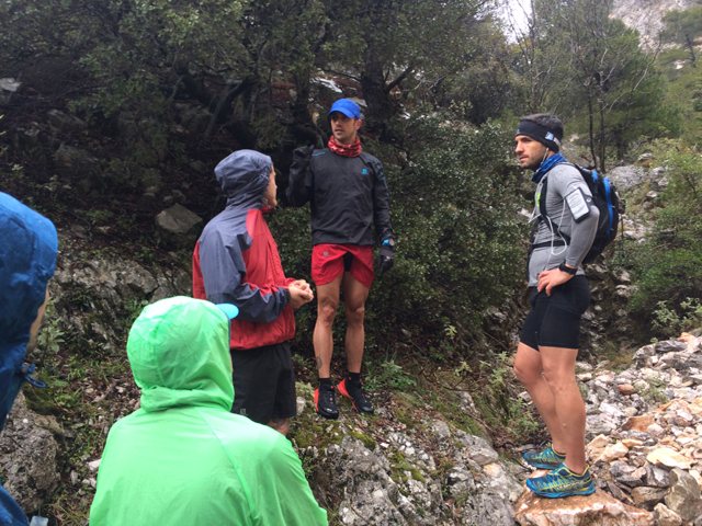 Συνεχίζουμε στο φαράγγι με συμβουλές για την σωστή φόρμα όταν είμαστε σε ανηφόρα. «Όταν τρέχουμε κουνάμε πάντα και τα χέρια μας. Όταν περπατάμε, είτε για να πάρουμε δυνάμεις είτε γιατί η κλίση είναι μεγάλη, βοηθάμε σπρώχνοντας σε κάθε βήμα το πόδι με το χέρι, στη μέση του μηρού όμως, όχι στο γόνατο». Στα τρία χιλιόμετρα περίπου αποφασίζουμε να γυρίσουμε. Ο καιρός πάνω στο βουνό κλείνει και μπαίνει θέμα ασφάλειας. Στο κατέβασμα συμβουλές για την κατηφόρα- το δύσκολο κομμάτι. «Το μυστικό είναι στη ροή όχι στην ταχύτητα» εξηγεί ο Διαλεκτός. Που πάει να πει να κρατάμε έναν ρυθμό και να φρενάρουμε όσο το δυνατόν λιγότερο ώστε να επιβαρύνονται λιγότερο και οι μύες. Κι αν σε πάρει η κατηφόρα και κινδυνεύεις να χάσεις τον έλεγχο και να κουτρουβαλιαστείς; Πάλι σημαντικός ρόλος στα χέρια που πρέπει να κινούνται ελεύθερα για να βοηθούν στην ισορροπία ή για να πιαστείς από έναν δέντρο αλλά και μερικά τρικ. Να κατεβαίνεις ζιγκ ζαγκ ώστε να μειώνεις την ταχύτητα, να αξιοποιήσεις μια πέτρα για να φρενάρεις ή να κάνεις ένα επιτόπιο άλμα για να εκτονώσεις την ενέργεια. Δύσκολα κόλπα αν δεν τα έχεις δοκιμάσει.