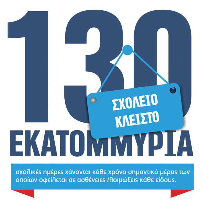 - 130 εκατομμύρια σχολικών ημερών χάνονται κάθε χρόνο στις ΗΠΑ εξαιτίας ασθενειών/λοιμώξεων κάθε είδους.