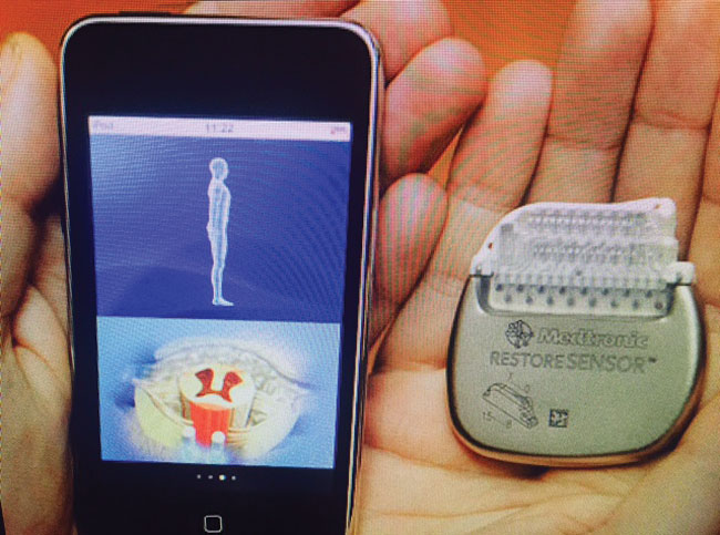 Με μια μικρή τομή τοποθετείται ένας βηματοδότης στη σπονδυλική στήλη. Ένα πολύ μικρό και λεπτό ηλεκτρόδιο το οποίο δίνει τον σωστό ρυθμό στα νεύρα ώστε να καλυφθεί το ανώμαλο ερέθισμα του πόνου. Μάλιστα, ο ασθενής έχει ο ίδιος τη δυνατότητα να ρυθμίζει την ένταση της νευροτροποποίησης και να ρυθμίζει το αναλγητικό αποτέλεσμα ο ίδιος.