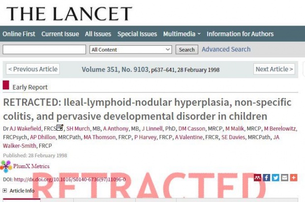 Το 1998, δημοσιεύτηκε στο The Lancet, μια μελέτη που έφερε την υπογραφή του Andrew Wakefield και υποστήριζε πως το εμβόλιο MMR, προκαλεί αυτισμό. Η μελέτη που αφορούσε μόλις 12 παιδιά, ήταν η αιτία της εξάπλωσης του σύγχρονου αντιεμβολιαστικού κινήματος.