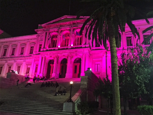 Το Δημαρχείο της Σύρου έγινε ροζ για καλό σκοπό (εικόνες)