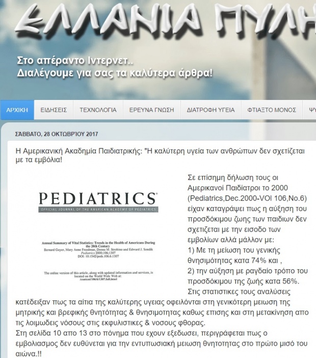 Παρατηρούμε αμέσως πως εκτός από το εξώφυλλο, η έρευνα των παιδιάτρων, δεν παρατίθεται πουθενά. Μπορείτε να την δείτε εδώ: Pediatrics,Dec.2000-VOl 106,No.6