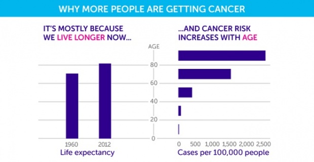 Οι λοιμώδεις νόσοι έπαψαν να είναι πρόβλημα, και σ’ αυτό συνέβαλαν αποφασιστικά τα εμβόλια. Ο κόσμος δεν πεθαίνει πια από λοιμώξεις, γι’ αυτό και ζει αρκετά ώστε να ασθενήσει από νόσους που κατά κανόνα εμφανίζονται σε μεγαλύτερες ηλικίες όπως εκφυλιστικές παθήσεις και καρκίνος. Για παράδειγμα, είναι γνωστό σήμερα πως η πιθανότητες να εμφανίσει κάποιος καρκίνο, αυξάνονται γεωμετρικά την αύξηση του προσδόκιμου ζωής. Προφανώς ένας άνθρωπος που θα ζήσει μέχρι τα 35 δεν έχει τις ίδιες πιθανότητες καρκινογένεσης με κάποιον που θα ζήσει μέχρι τα 80.