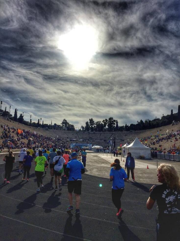 Τέλος ένατου χιλιομέτρου, λίγο πριν στρίψουμε στην Ηρώδου. Έλεγα να σπριντάρω αλλά δεν μπορώ άλλο. "Παναγιώτη, ήδη έχω τρέξει περισσότερη απόσταση μετά που ξανάρχισα, δεν μπορώ να πάω πιο γρήγορα", λέω, "χαλαρά Νικ, όλα ΟΚ, τελειώνουμε" ο φίλος μου, και ξαφνικά μία αγκαλιά, ο Μάνος, άλλος φίλος - "παιδιά σας έχω στα είκοσι μέτρα από την αρχή, μου δώσατε ρυθμό, πάμε". Κατεβαίνουμε την Ηρώδου, σα σε όνειρο, βγάζουμε και selfies... "Θεέ μου είμαι εδώ ξανά, τα καταφέρνω, προσοχή στο τέλος, προσοχή". Ο Πάνος κάνει γύρους μπροστά μας, χαλαρός - αχ, άλλη κλάση, άλλες αντοχές, νειάτα, πώς με άντεξε τόσα χλμ. Μα είναι εντάξει, είναι απλά εντάξει, είναι τέλειο κι είναι εντάξει. Νάτο το Καλλιμάρμαρο, γύρω κόσμος, χειροκροτάει, ο Πάνος πάει μπροστά, "θα σε φωτογραφίσω Νικ να τερματίζεις".