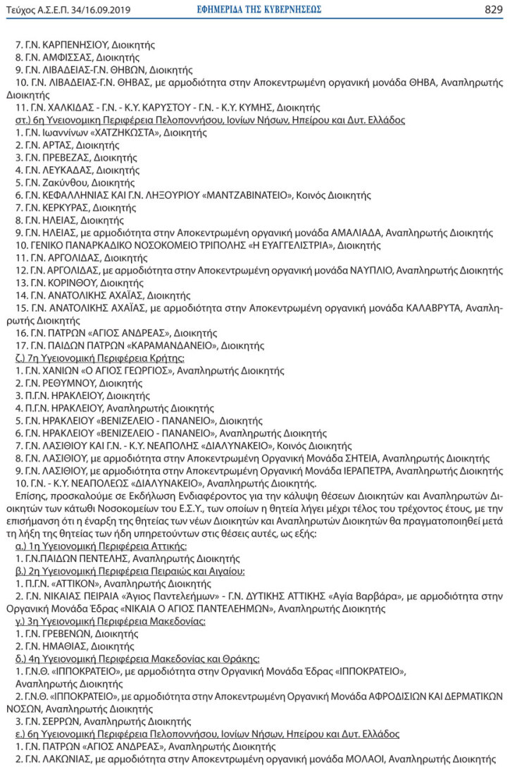 Δείτε την προκήρυξη που δημοσιεύθηκε στο Φύλλο της Εφημερίδας της Κυβερνήσεως (ΦΕΚ) για τα κριτήρια της επιλογής των νέων διοικητών για τα νοσοκομεία του ΕΣΥ της χώρας.