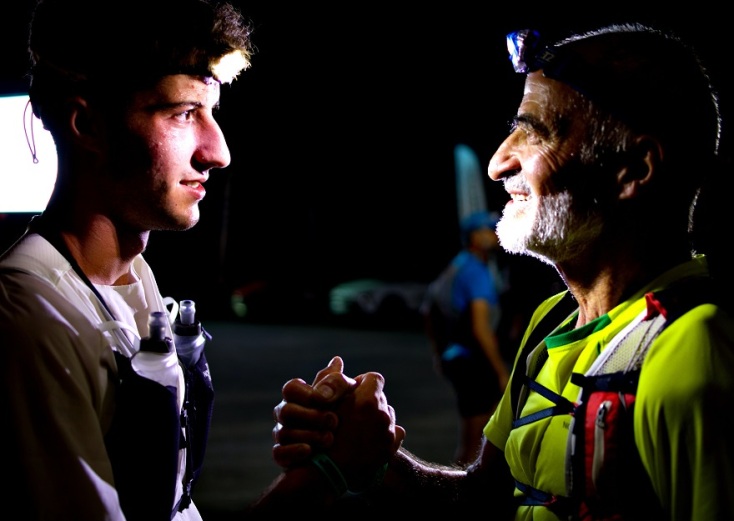 Αναπάντεχη τύχη να βρεθώ μπροστά στην υπέροχη εικόνα παππού και εγγονού που είχαν τα χέρια τους δεμένα. Έκανα φωτογραφία τον μεγαλύτερο και τον μικρότερο αθλητή της διοργάνωσης ακριβώς πριν μπουν στο πιο δύσκολο τερέν των ογδόντα χιλιομέτρων με θετική υψομετρική διαφορά να υπερβαίνει τα 5100 μέτρα. «Ελπίζω να με περάσεις» είπε με χαμόγελο ο εβδομηντάχρονος Κώστας Καλογήρου στον Απόστολο Τζουμάκα, που έκανε την παρθενική του εμφάνιση. Εννιά ώρες αργότερα ο νεαρός αθλητής θα τερμάτιζε τρίτος.