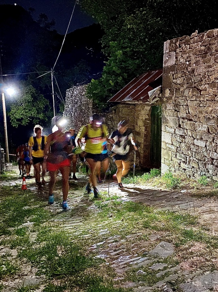 Αλήθεια δεν υπάρχει καλύτερο τραγούδι για να ξεκινήσει ένας τέτοιος αγώνας στην Ήπειρο. Τα λευκά φώτα κεφαλής χύθηκαν στα πλακόστρωτα και δημιούργησαν το σώμα ενός φωτεινού φιδιού που κύλησε στα στενά για να χαθεί στην ανηφόρα για τα Μεγάλα Λιθάρια. Έμεινα πίσω και περπάτησα τα φωτισμένα σοκάκια που λίγο πριν τη δύση του ασήμιζε το γεμάτο φεγγάρι. Πίσω από την μεγάλη αυλόπορτα οι κύριες που ξύπνησαν για να χειροκροτήσουν τους αθλητές μου κέρασαν μέτριο ελληνικό. «Για μας είναι γιορτή!»
