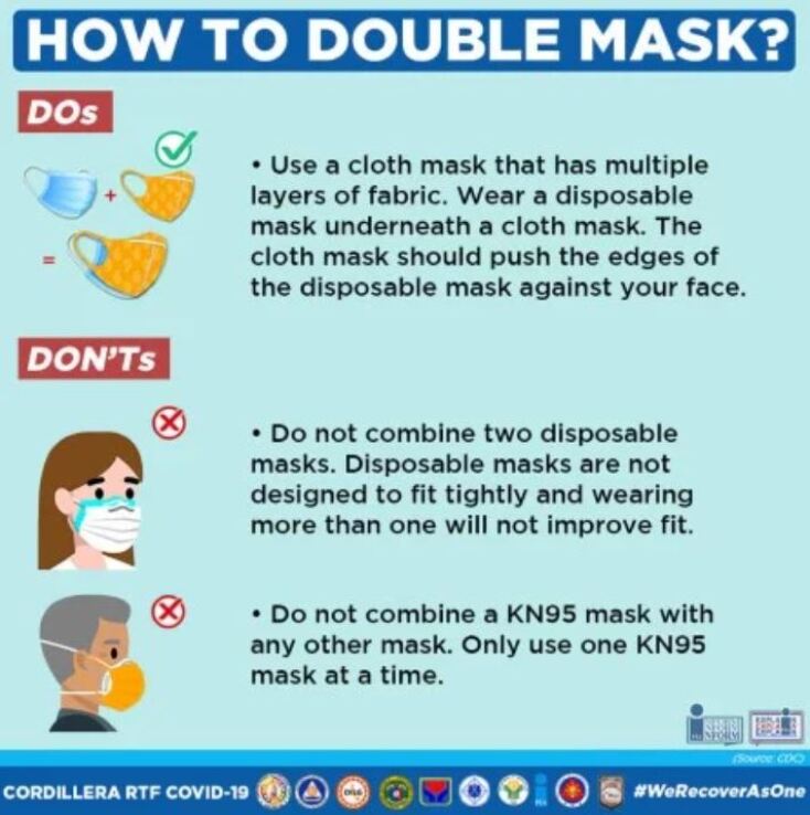 Από την πλευρά του, το CDC καλεί το κοινό αν μη χρησιμοποιεί δυο χειρουργικές μάσκες καθώς δεν είναι σχεδιασμένες να εφαρμόζουν στενά και, επομένως, η χρήση δυο εξ αυτών δεν θα βελτιώσει την κατάσταση. Σύμφωνα με τους ειδικούς, δεν πρέπει ποτέ να χρησιμοποιούνται ταυτόχρονα δυο μάσκες KN95.