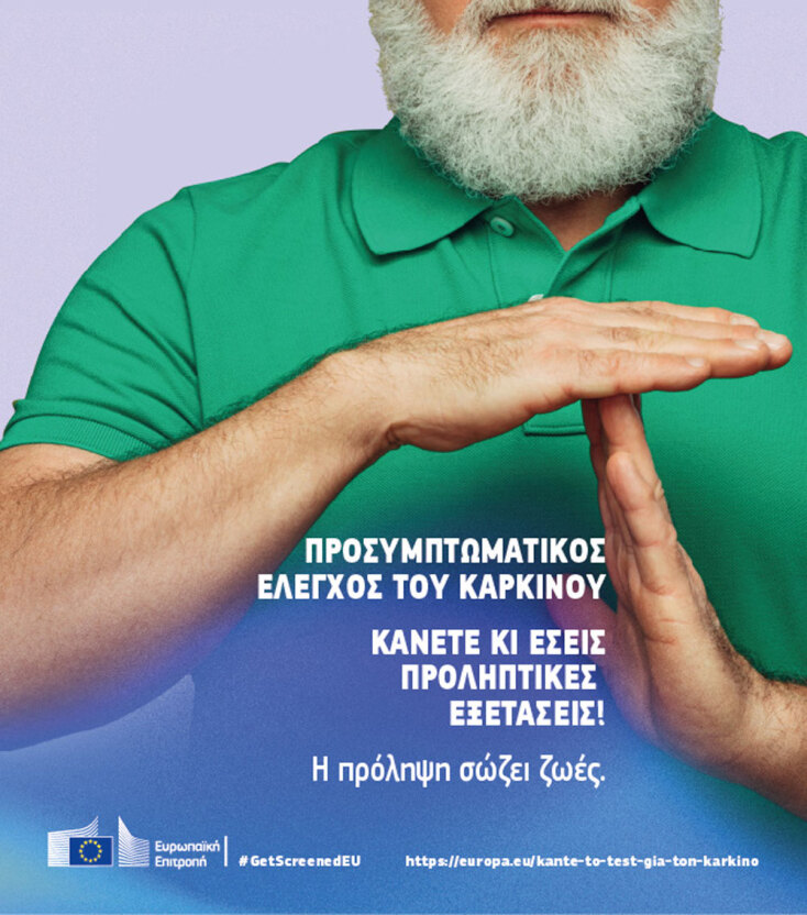 Η καµπάνια #GetScreenedEU προτρέπει τους πολίτες να αφιερώσουν λίγο χρόνο για τη φροντίδα της υγείας τους και να υποβληθούν σε προληπτικό έλεγχο για τον καρκίνο. Με το Ευρωπαϊκό Σχέδιο για την Καταπολέµηση του Καρκίνου, η ΕΕ στοχεύει στην αντιµετώπιση του καρκίνου, σε όλη την πορεία της νόσου, από την πρόληψη, την έγκαιρη ανίχνευση και τη θεραπεία έως τη βελτίωση της ποιότητας ζωής µετά τη διάγνωση για τους ανθρώπους σε ολόκληρη την ΕΕ.