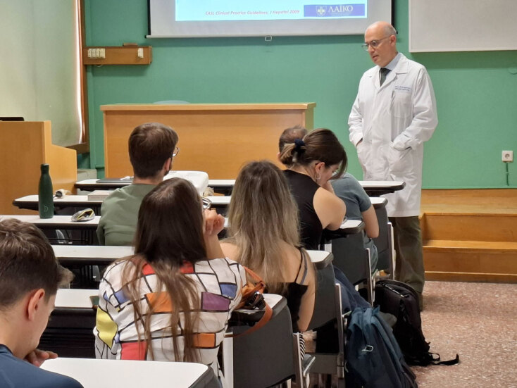Ο Γιώργος Σωτηρόπουλος δεν περιορίζεται στο νοσοκομείο. «Κάθε Τρίτη, διδάσκω στους φοιτητές πάνω στους θαλάμους. Τετάρτη και Πέμπτη έχουμε μαθήματα στο αμφιθέατρο». Είναι ενεργός καθηγητής στην Ιατρική Αθηνών. «Το να εκπαιδεύεις δεν είναι πολυτέλεια. Είναι καθήκον. Και χαρά».